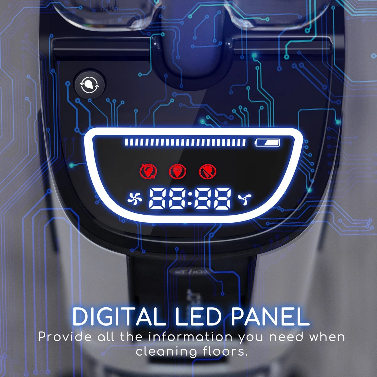 De Aigostar Whale steelstofzuiger kun je rechtop plaatsen tijdens het opladen om ruimte te besparen. Daarnaast is het voorzien van een handige LED-display en spraakfunctie die je duidelijk informeert over de werkstatus en vraagt of hij kan starten met schoonmaken.