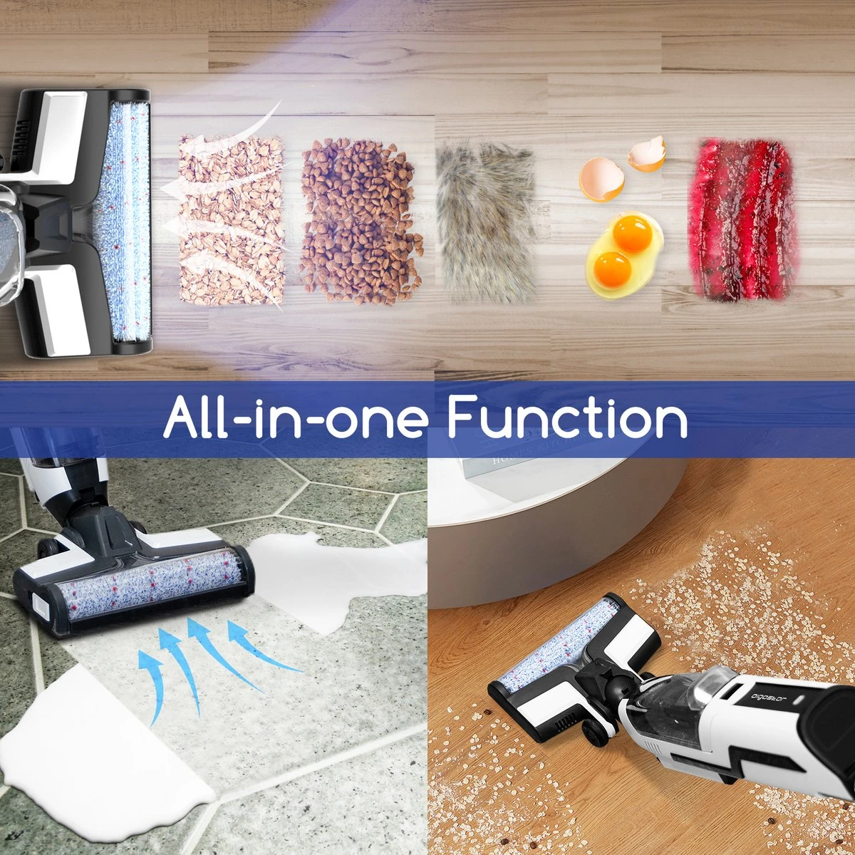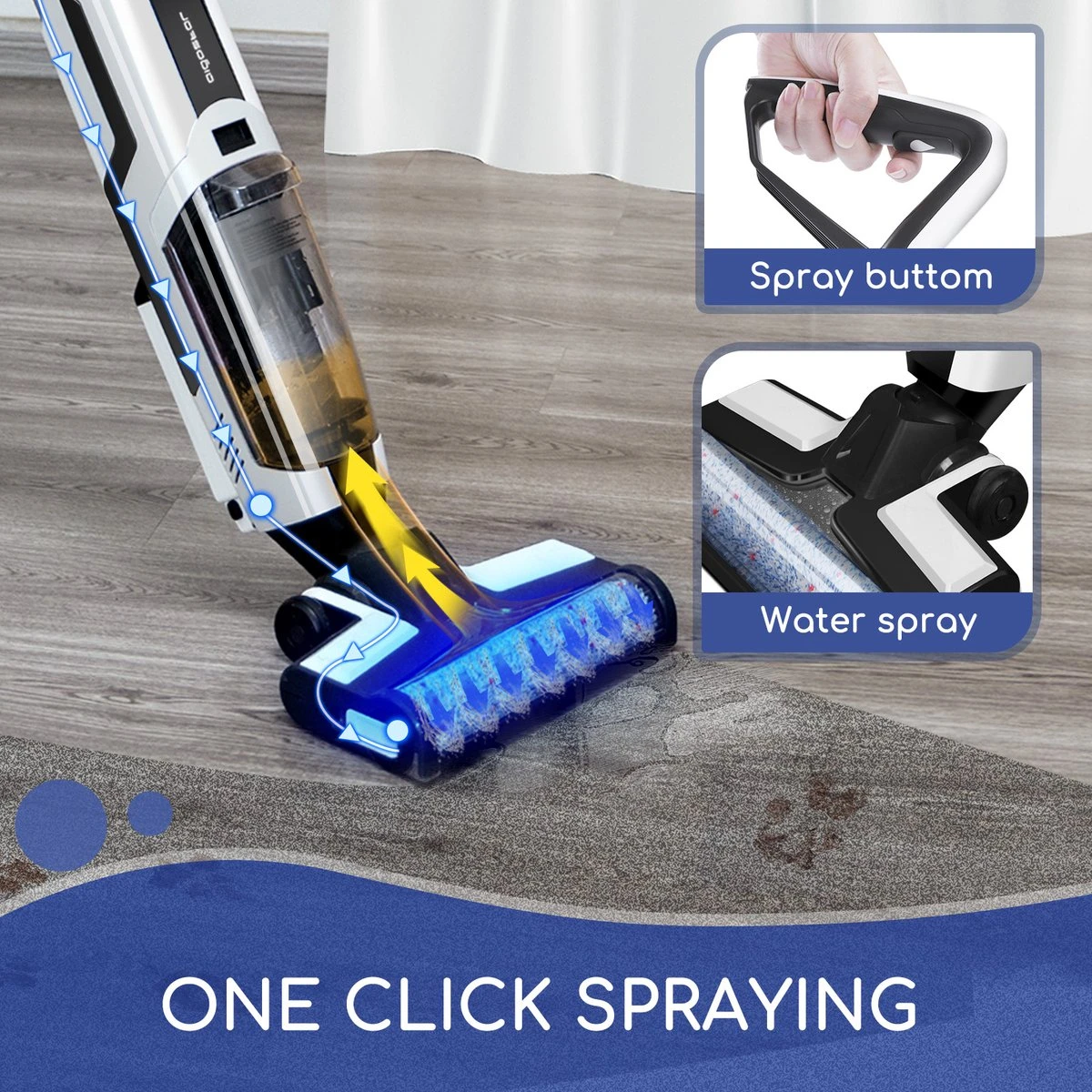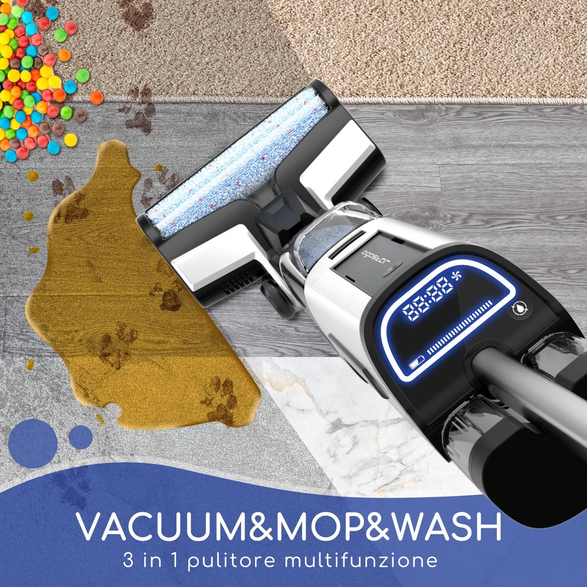 Met de Aigostar Whale Vloerreiniger kun je gemakkelijk zowel stofzuigen als dweilen. Het enige wat je nodig hebt is de juiste opzetborstel om op een effectieve manier natte of droge vlekken schoon te maken. Door de krachtige reiniging van de Vloerreiniger laat je de vloer schoon, droog en streeploos achter.