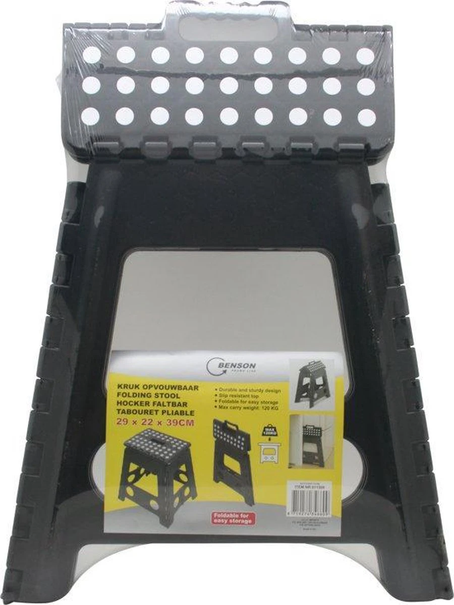 Handig opvouwbare kruk. Is volledig opvouwbaar wat hem makkelijk weg te zetten maakt. De kruk is zwart met wit en kan een maximaal gewicht dragen van 120 kg. Let op! Niet om op te staan.