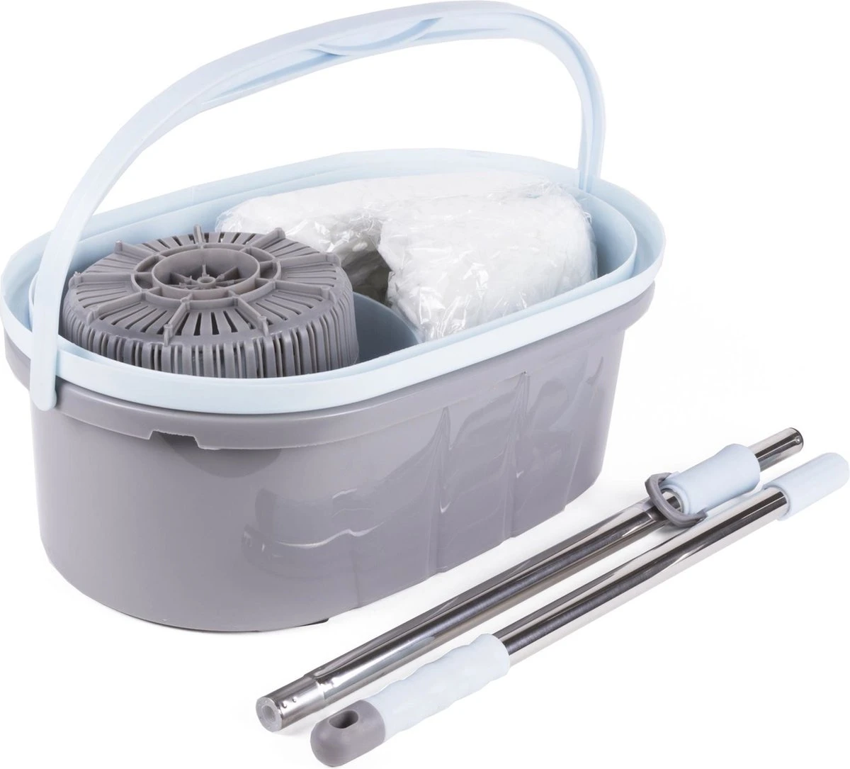 Maar het beste van de Whizz Magic Mopร is de in de steel ingebouwde spinner. steel in de emmer en de supersnel draaiende spinner dwingt het overtollige water uit de kop. U kunt uw vloer dus schoonmaken zonder plassen water of druppels achter te laten! Het vervangen van het mophoofd is erg eenvoudig.