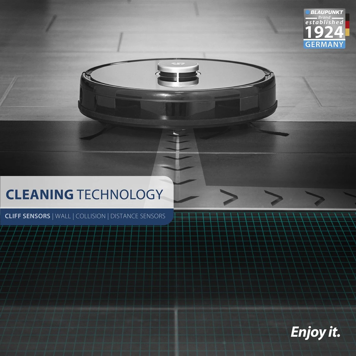- TOF sensor: Met de innovatieve TOF-sensor kan de robot ook perfect langs glas en zwarte randen rijden.