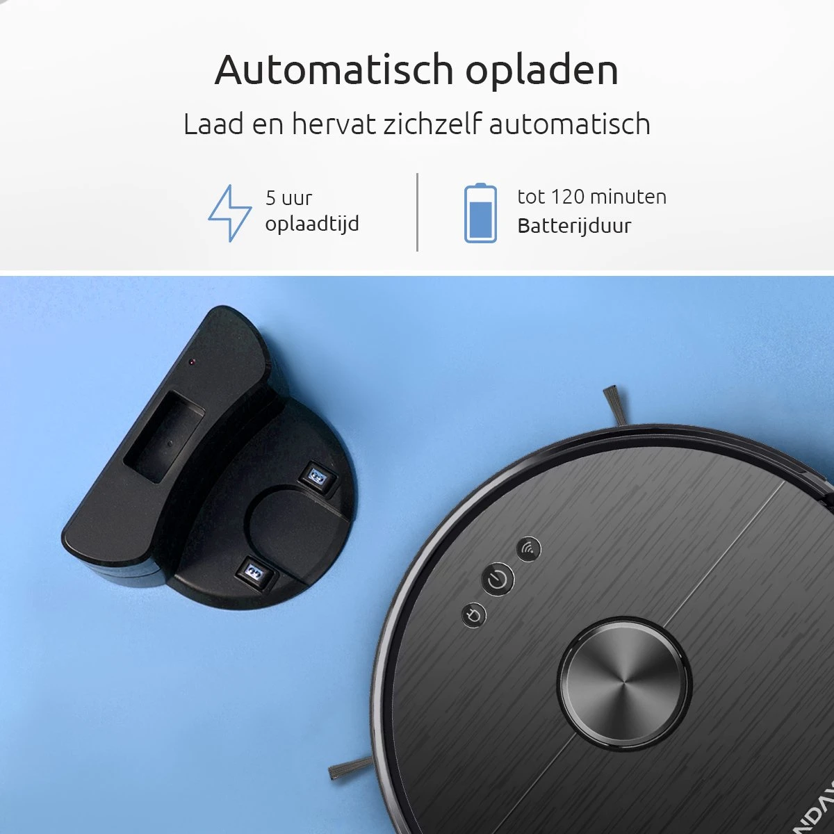 Breakpoint hervatbare reiniging – Als de robot geen stroom meer heeft, wordt deze automatisch opgeladen, volledig opgeladen en gaat hij terug naar de onderbroken plaats om door te gaan met schoonmaken. Wees gerust, het zal de klus klaren.