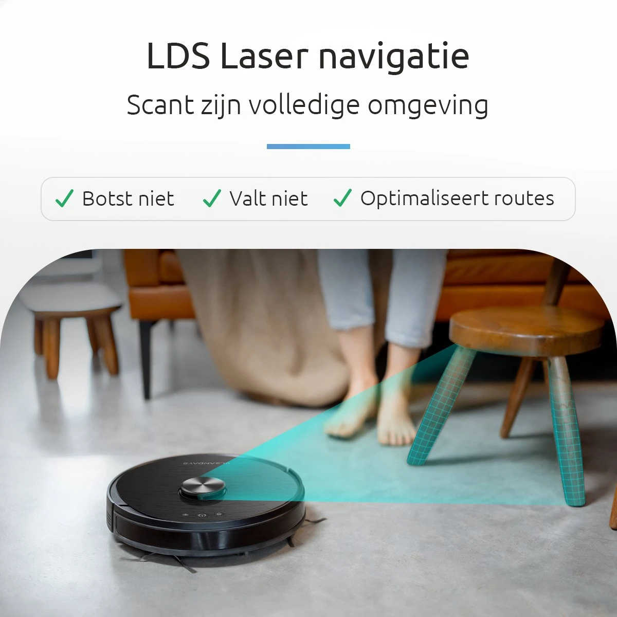 Navigatie: Lidar + SLAM, 360° snel scannen