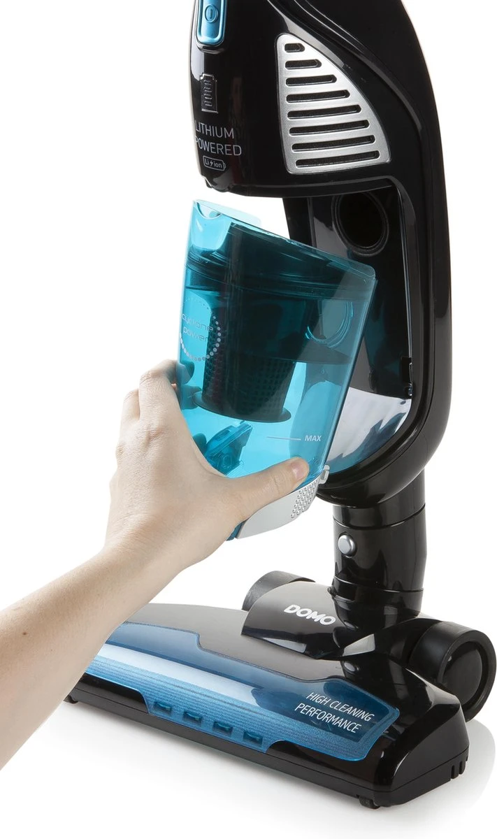 Geef je huis tussendoor een snelle opfrisbeurt met de DOMO steelstofzuiger DO228SV. De steelstofzuiger is voorzien van een 3-in-1 systeem wat super handig is. Het toestel is namelijk uitgerust met een uitneembare kruimelzuiger én dweilsysteem. Met dat laatste stofzuig en dweil je dus in één beweging. Bij het stofzuigen kies je tussen 2 snelheden. Het krachtige cycloonsysteem met 21,6 V zorgt ervoor dat je geen enkel stofje mist. Nadien plaats je hem gewoon terug in zijn oplaadstation. De steel kan je plooien voor een extra compacte opberging. Kenmerken