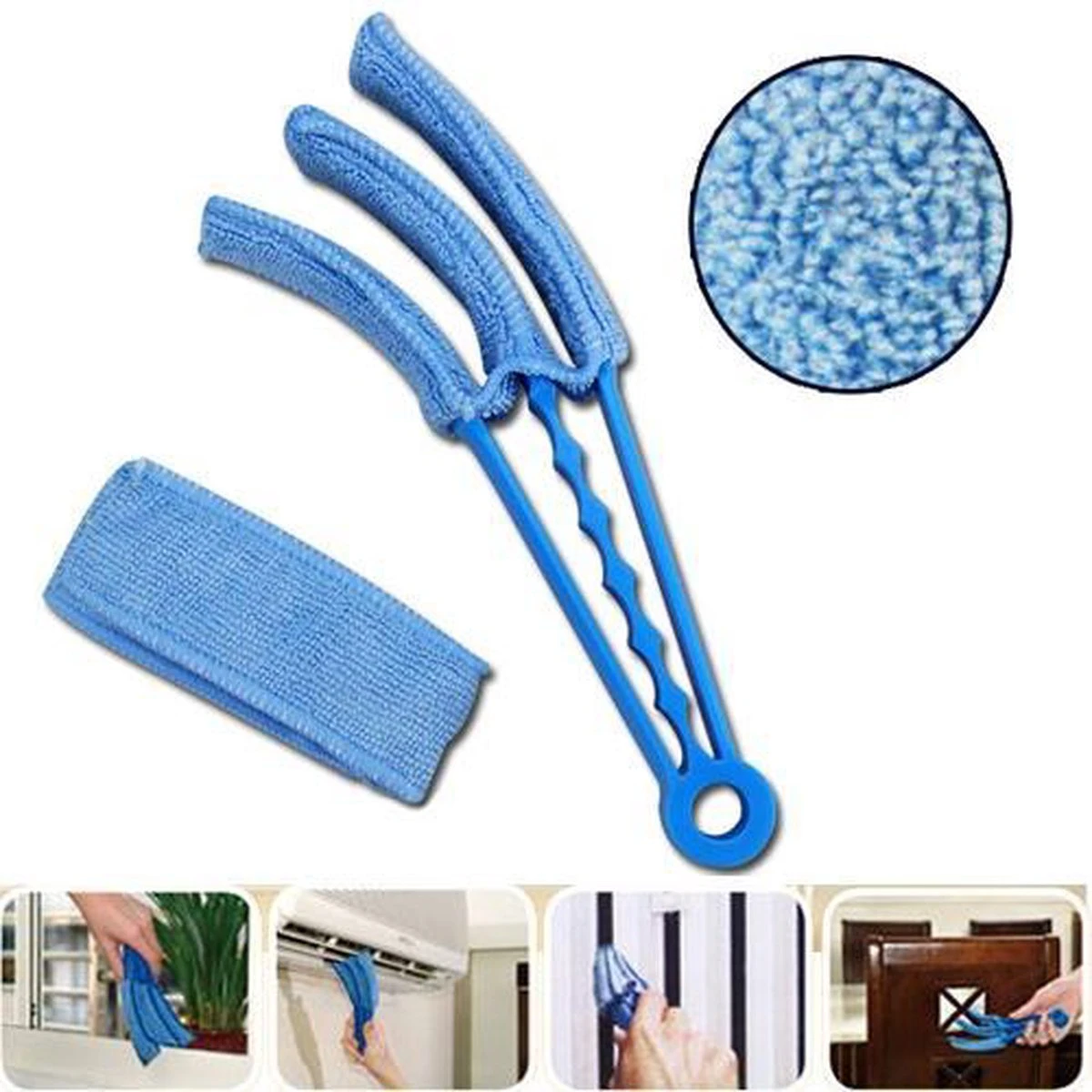 Een 3-delige borstel voor het afstoffen, reinigen en poetsen van uw jaloezieën, roosters, airco en ventilatiesystemen.