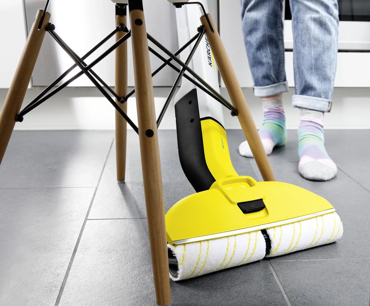 Vlekken en spatten tot aan de rand verwijderen โ zonder emmer of onvermoeibaar schrobben. Niet mogelijk? Denk nog eens na! De accumop EWM 2 met zijn twee tanks maakt dit mogelijk โ en conventionele dweilen overbodig. De roterende rollen worden constant bevochtigd met vers water terwijl het verzamelde vuil in de vuilwatertank terechtkomt. Het apparaat laat vloeren tot 20% schoner achter dan conventionele moppen*. Dankzij de slanke vorm en het flexibele draaischarnier komt de EWM 2 niet alleen gemakkelijk onder meubels, maar bespaart hij ook opbergruimte. De droogtijd van de vloer is slechts twee minuten, waardoor het perfect geschikt is voor gebruik op alle soorten harde vloeren (bijv. tegels, parket, laminaat, PVC en vinyl). De krachtige lithium-ion-accu heeft een looptijd van ca. 20 minuten. Hierdoor reinig je tot 60 mยฒ vloeroppervlak met het apparaat.