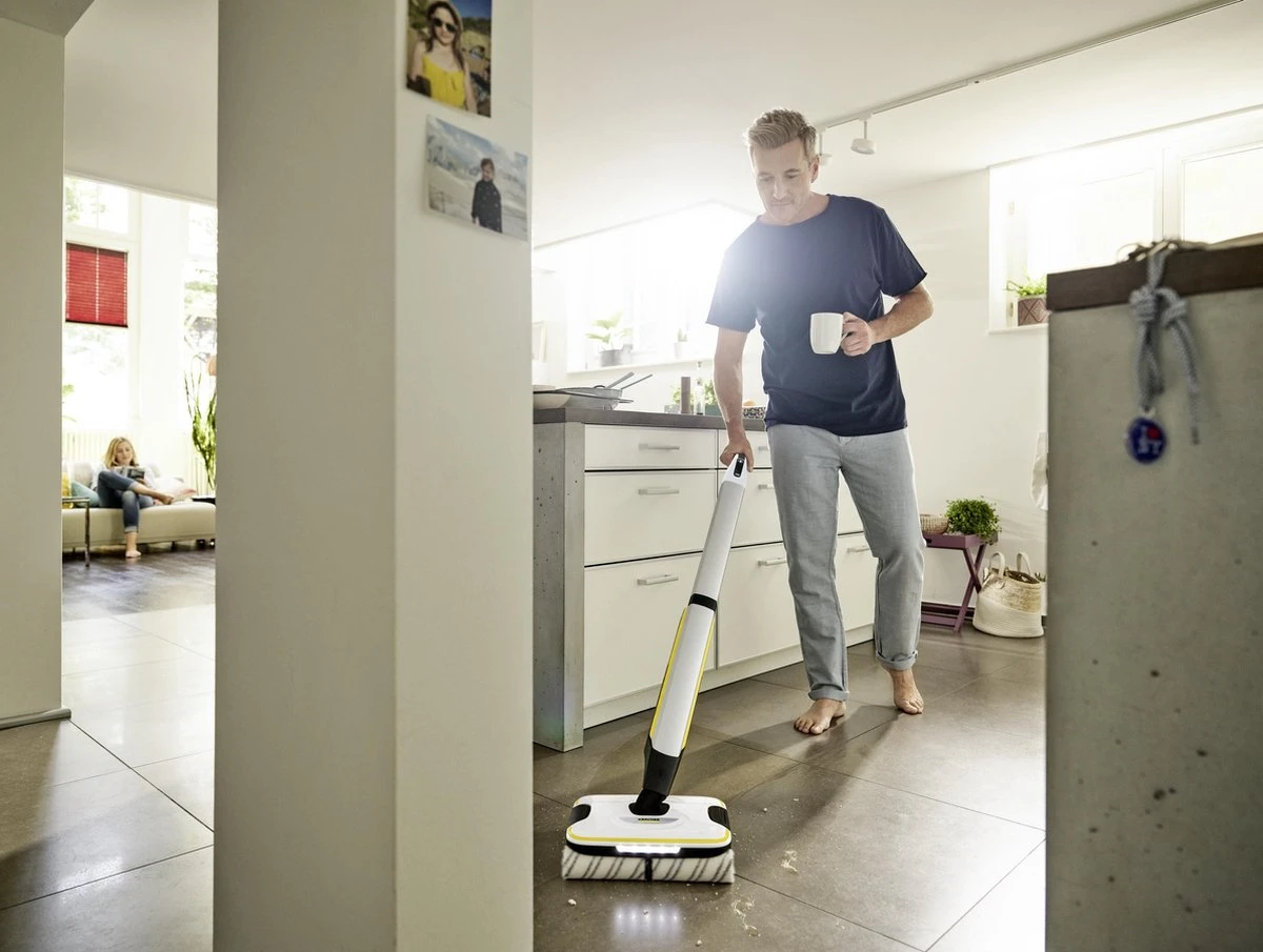 Je vloer is je podium. Met onze FC 7 Cordless laat je jouw vloer glanzen – en dat doe je met een ongeveer 20 procent diepere en krachtigere reiniging dan met welke poetsdoek dan ook*. In plaats van vuil heen en weer te vegen, pakken de microvezelrollers met zelfreinigende functie het eenvoudig op en transporteren het vuile water naar een aparte tank. Er blijft heel weinig restvocht op de vloer achter, wat betekent dat de show al na 2 minuten kan doorgaan!