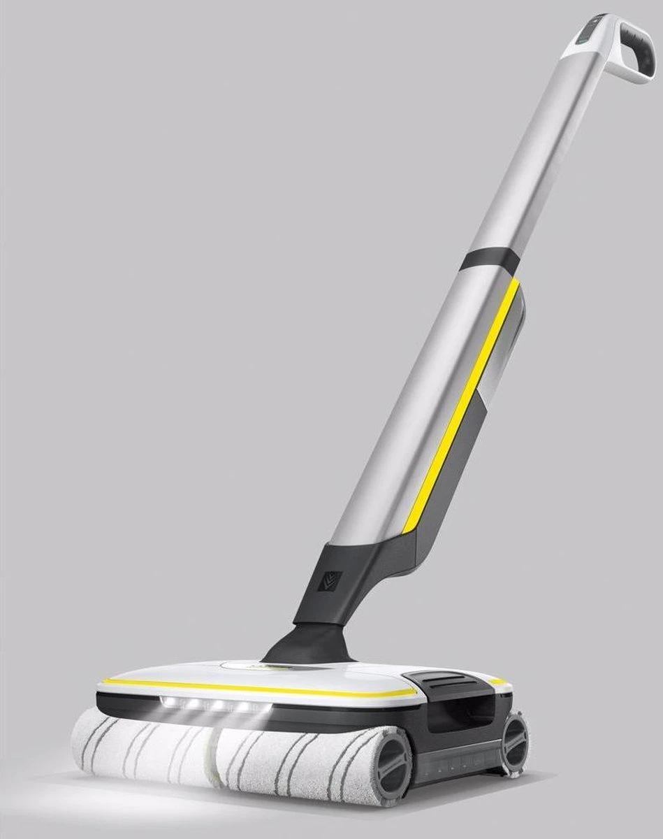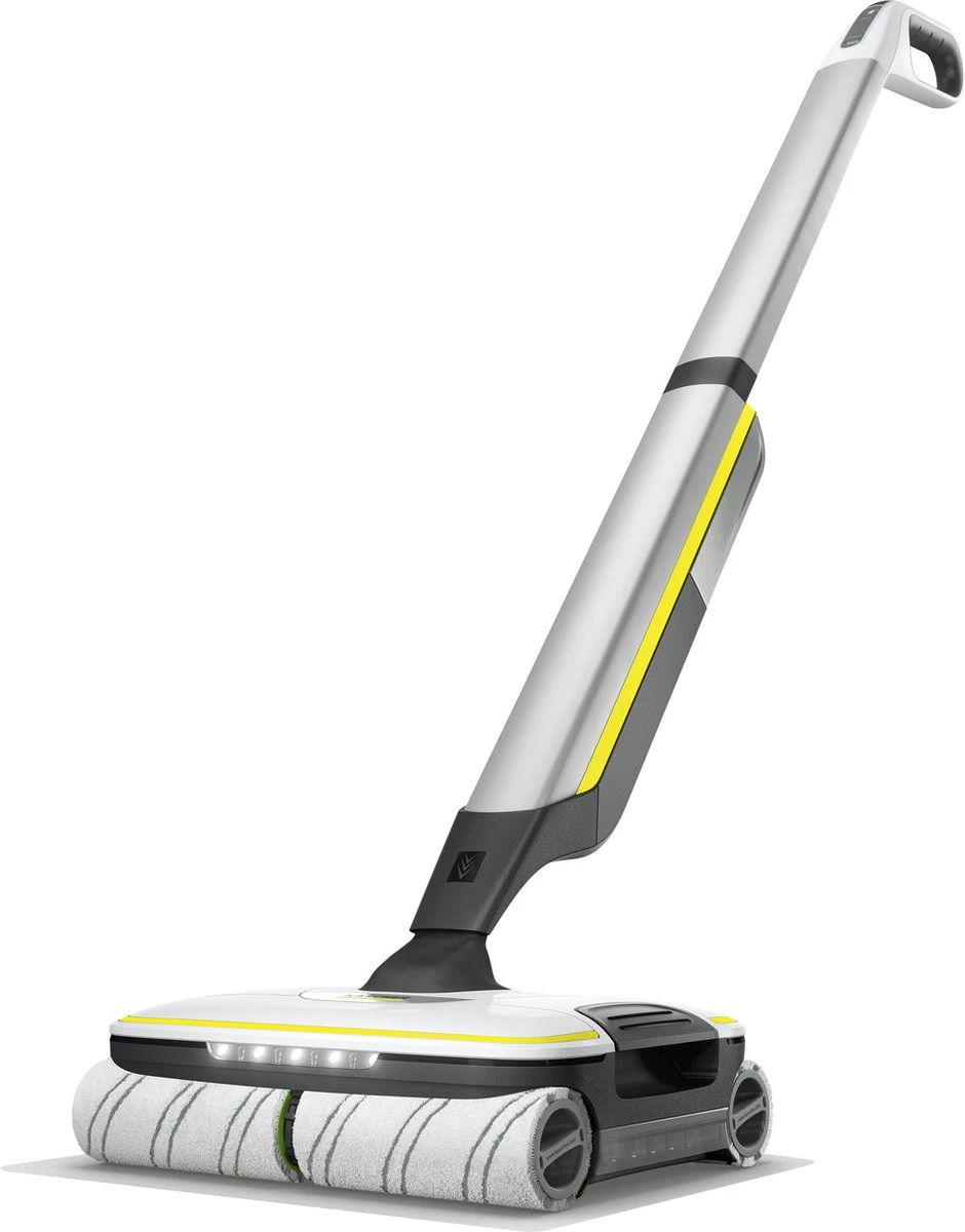 De snoerloze Floor Cleaner FC 7 van Kärcher vangt in één stap zowel droog als nat alledaags vuil op. Je hoeft niet meer te stofzuigen voordat je gaat dweilen, wat de helft van de tijd bespaart *. De technologie met vier rollen en tegenrotatie maakt snelle en effectieve reiniging mogelijk met een hoge vuilverwijdering en glijdt soepel over vloeren. Zelfs haar wordt probleemloos opgepikt dankzij het haarfilter. Vloeren zijn tot 20% schoner dan met conventionele moppen ** – tot aan de rand. Het gedoe met het slepen van een emmer behoort tot het verleden, aangezien de vloerreiniger zowel een schoonwatertank als een afvalwatertank heeft. Ook is er geen contact meer met vuil, omdat de rollers constant worden bevochtigd met vers water en het vuile water rechtstreeks in de afvalwatertank terechtkomt. De watertoevoer en de rotatiesnelheid van de rollen kunnen in twee reinigingsmodi worden aangepast aan de vloer. Er is ook een boostfunctie om hardnekkig vuil te bestrijden. De accuduur is 45 minuten, genoeg om een oppervlakte van ongeveer 135 m² schoon te maken. Het apparaat is geschikt voor alle harde vloeren (tegels, parket, laminaat, PVC, vinyl). Deze Premium versie wordt standaard geleverd met een extra set (steen)rollers en 500 ML universeel reinigingsmiddel. Bovendien is het apparaat voorzien van praktische ledverlichting bij de rollers voor nog meer schoonmaakgemak.