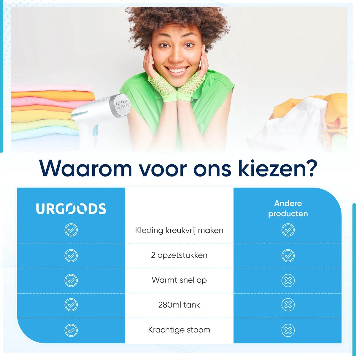 De ideale kledingstomer voor thuis of op reis! Handstomer met een handig design en een watertank van 280ml.