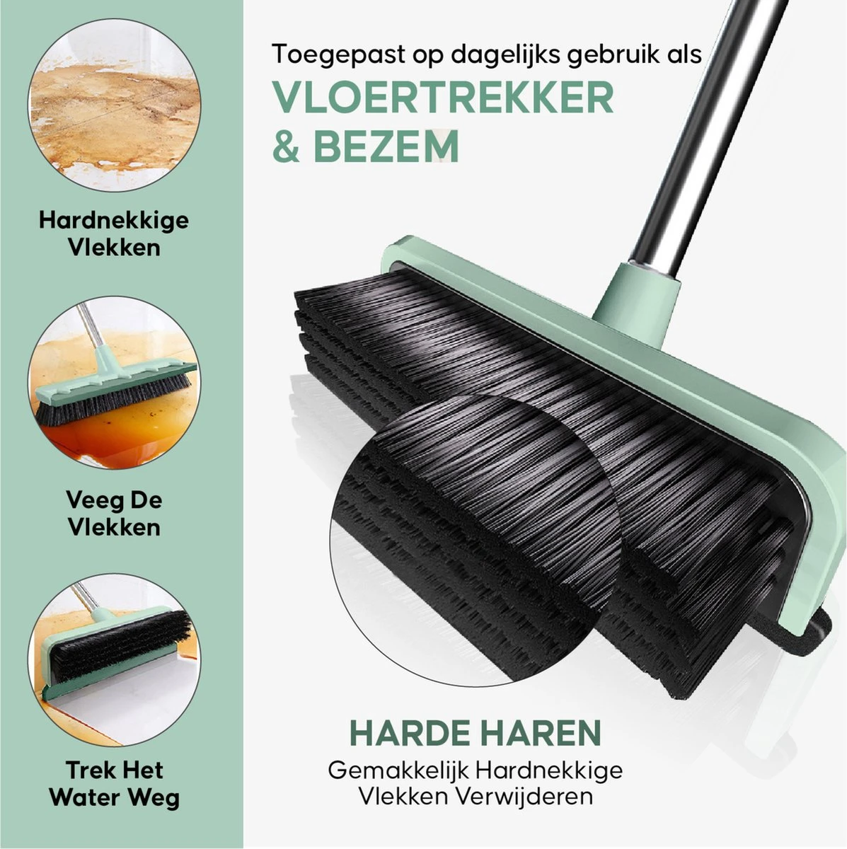 Herken jij dat ook? alle verschillende bezems in uw kast. Deze 2 in 1 is een praktische bezem die je overal in huis kunt gebruiken! Deze 2 in 1 vloertrekker & bezem is ideaal voor in de keuken, hal, badkamer en iedere andere ruimte in huis! Dankzij de harde haren zijn hardnekkige vlekken eenvoudig te verwijderen en dankzij de vloertrekker kun je overtollig water makkelijk wegtrekken.