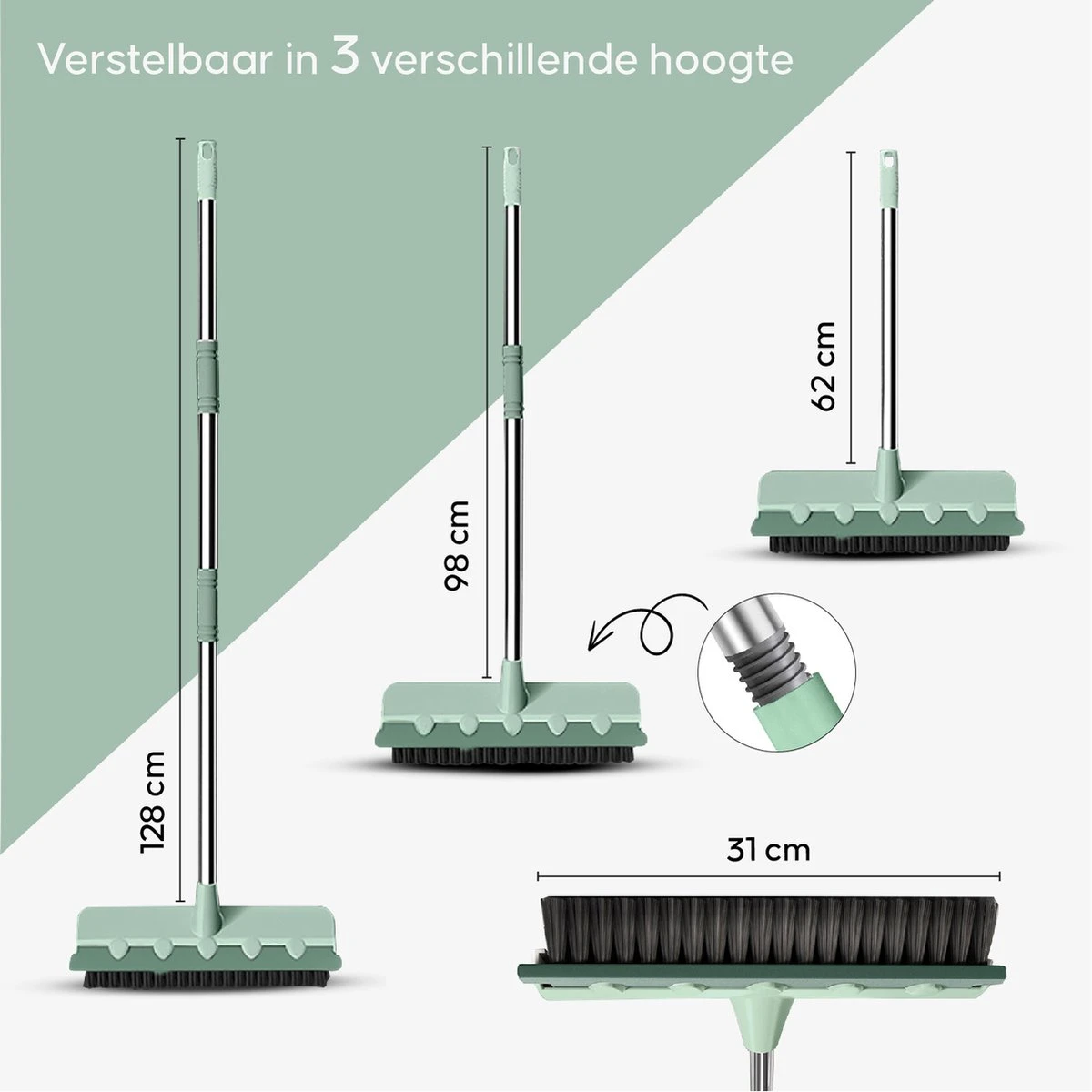 • Verstelbaar ontwerp – De bezem heeft een verstelbaar ontwerp. Je kunt de steel namelijk opdelen in 3 verschillende lengtes, namelijk in een lengte van 128 cm, 98 cm en 62 cm.