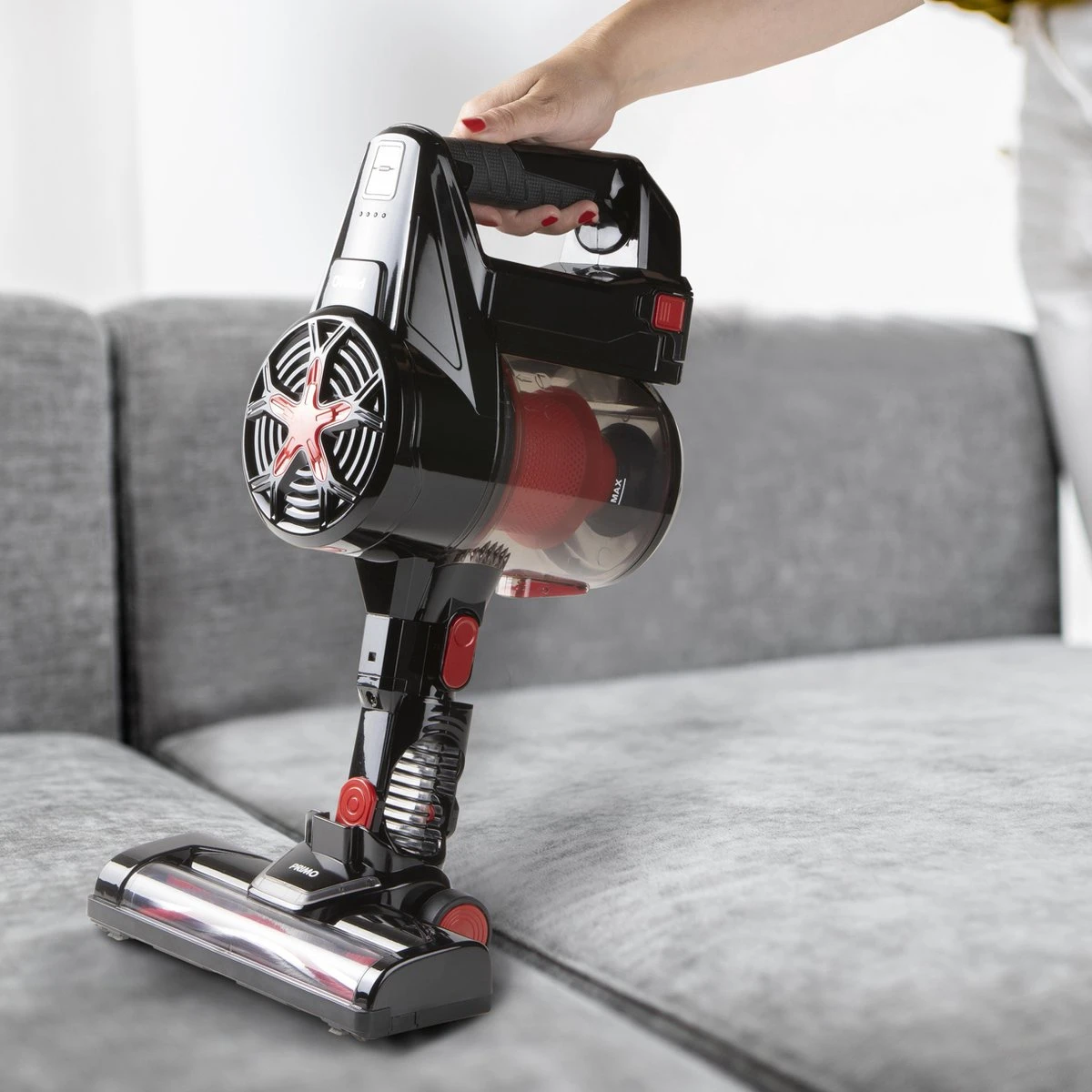De PRIMO PR504SV 3-in-1 steel stofzuiger zonder zak / kruimelzuiger is ideaal om kleine taken te stofzuigen. De krachtige 22.2V Lithium-Ion accu geeft je maar liefst 50 minuten aan zuigkracht als kruimelzuiger op ECO modus. In de turbo stand met borstelkop heb je maar liefst 25 minuten zuigkracht, ruim voldoende voor de meeste klussen. Het efficiënte cycloon systeem genereert genoeg zuigkracht voor alle vloertypen. Doordat de PR504SV Steelstofzuiger draadloos is, heb je complete bewegingsvrijheid. Door de steel te verwijderen, verander je de Handstofzuiger in een kruimelzuiger. Met de meegeleverde kierenzuiger en stofborstel bereik je moeilijk bereikbare plekken. De PR504SV komt in de stoere kleurencombinatie Zwart / Blauw.