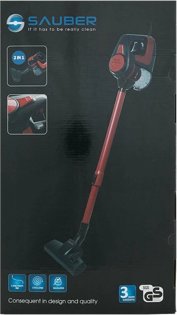 Met deze steelstofzuiger van Sauber is stofzuigen helemaal niet vervelend. Met het mooie en slimme design maak jij je woning in een handomdraai stofvrij. Door de kabellengte van 6 meter kom je overal gemakkelijk bij. Bovendien hoef je voor deze stofzuiger nooit zakken aan te schaffen, dat scheelt kosten. Na een goede schoonmaakbeurt leeg je hem eenvoudig. Even gauw wat kruimels of pluisjes weghalen? Dan gebruik je ‘m ook als kruimeldief.