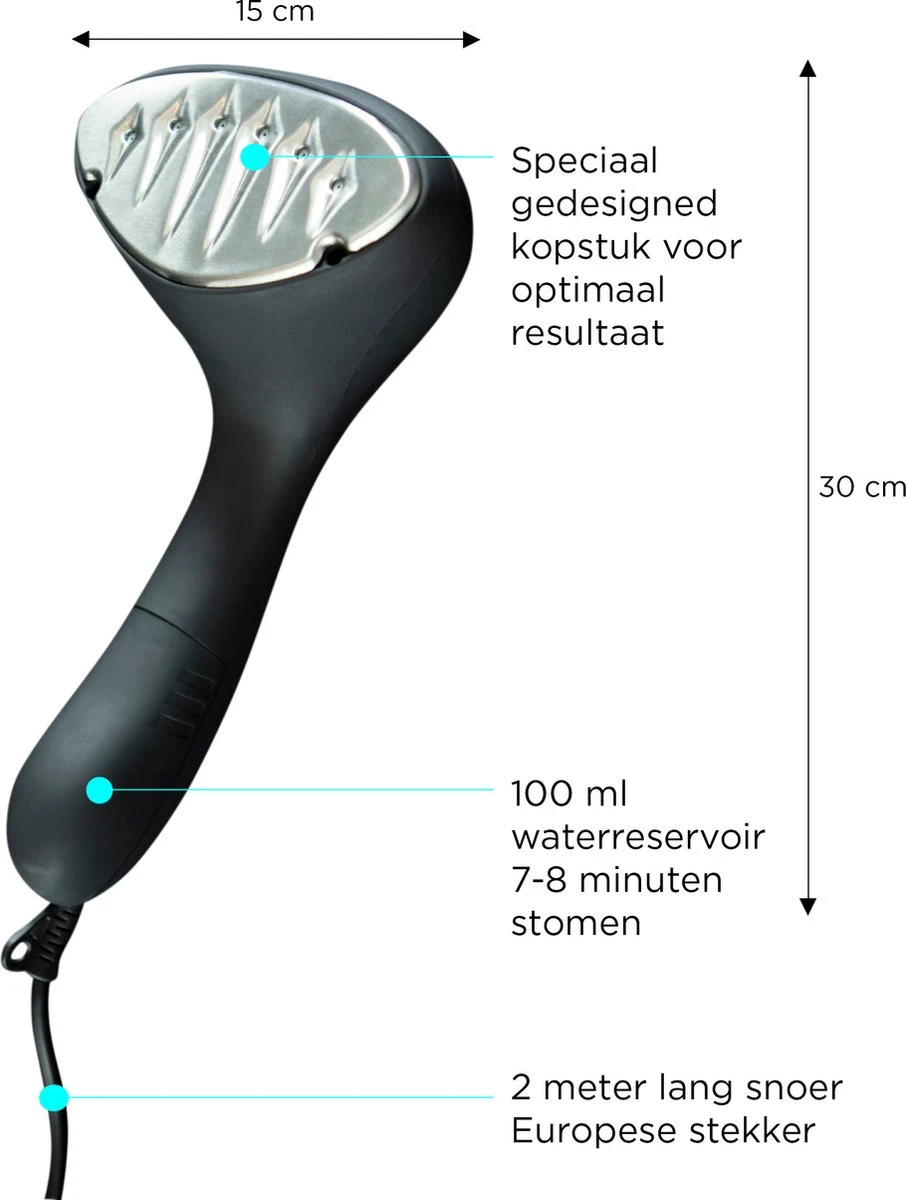 Een handstomer of kledingstomer is geen vervanger van een (stoom)strijkijzer of stoomgenerator.