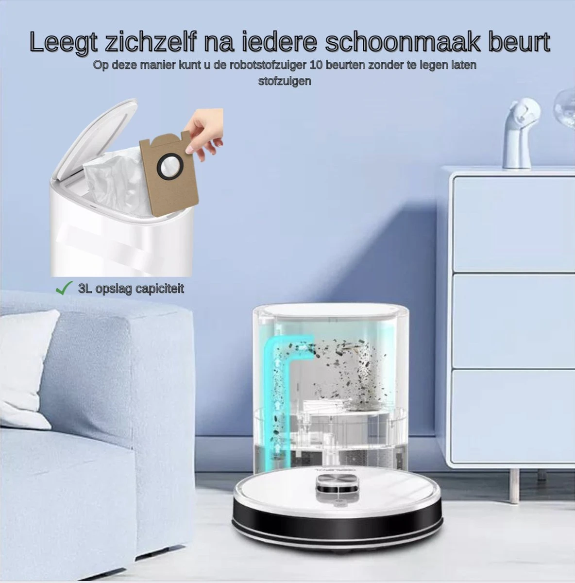 – Door de afzuigfunctie op het leeg/laadstation hoeft u niet na iedere schoonmaakbeurt het stofreservoir leeg te maken die in de robotstofzuiger zelf zit. Zo hoef jij meerdere weken niet om te kijken naar het stofzuigen.
