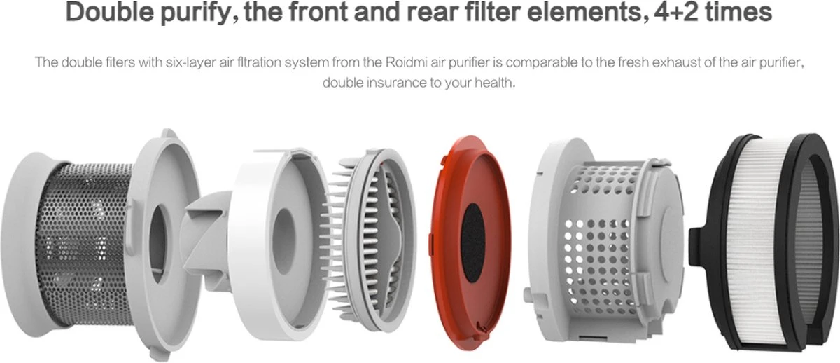 Dubbele filters met zeslaags luchtfiltratiesysteem zorgen voor een uitstekende reinheid en veiligheid voor de gezondheid. Bovendien filtert Roidmi X20 allergenen effectief uit, zelfs mijten die onzichtbaar zijn voor het blote oog. Met een stofzuiger creëer je eenvoudig een veilige, schone omgeving voor jezelf en je naasten.