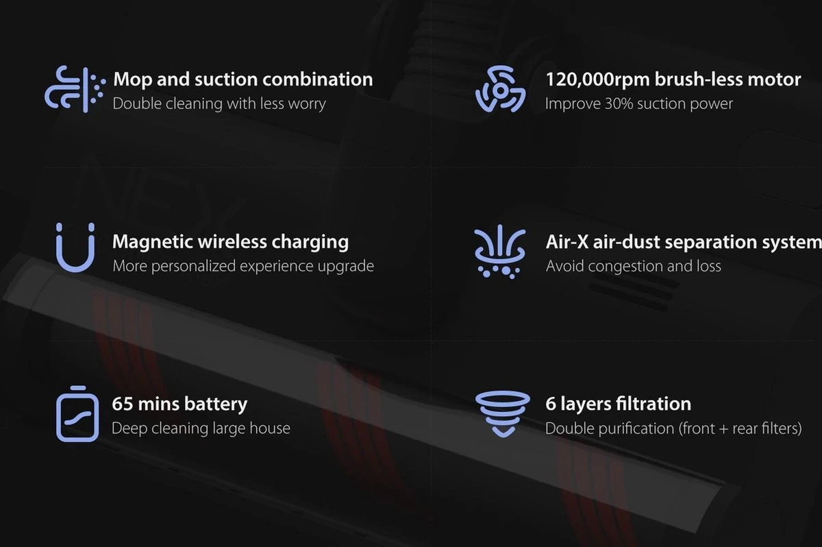 Roidmi X20 is handig te bedienen met een paar knoppen. Het is net zo eenvoudig om het apparaat op te laden – monteer het gewoon op de meegeleverde magnetische houder die is aangesloten op de draadloze oplader. Roidmi X20 is ontworpen voor uw gemak – een probleemloze werking maakt schoonmaken een plezierige ervaring.