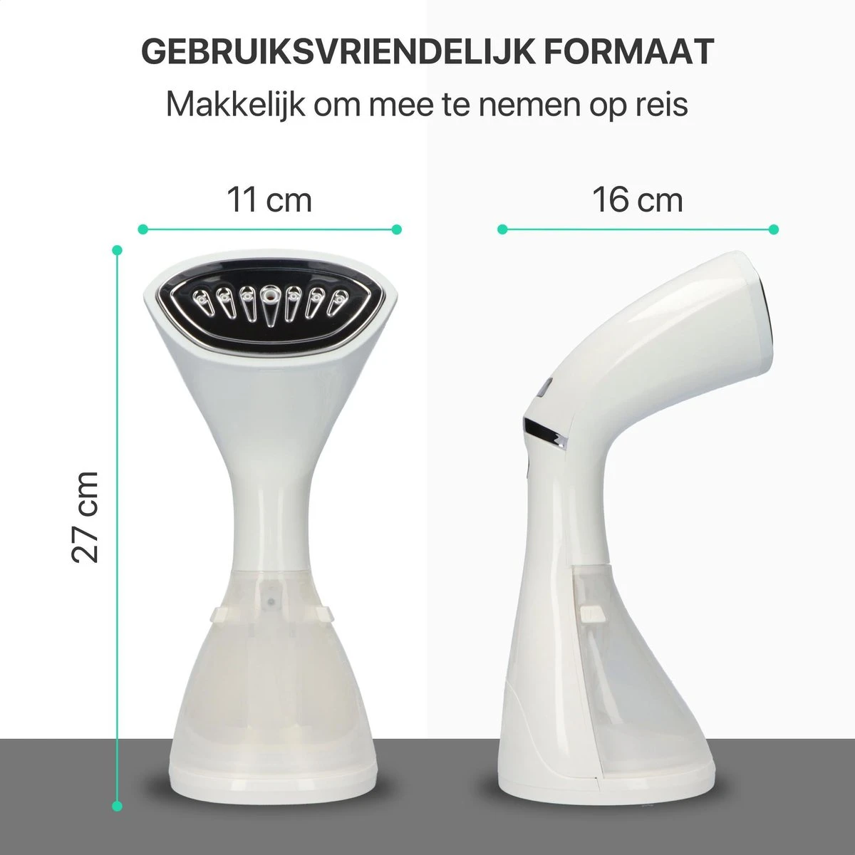 De handstomer is compact en daardoor ideaal voor thuisgebruik of voor onderweg. Vergeet de stomer dus zeker niet in te pakken als je op reis gaat, zodat je jouw kleren na een lange reis in de koffer eenvoudig en snel kan opfrissen en kreukvrij kan maken.